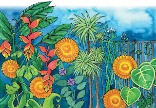 Um jardim tropical inteiro no estilo William Morris.